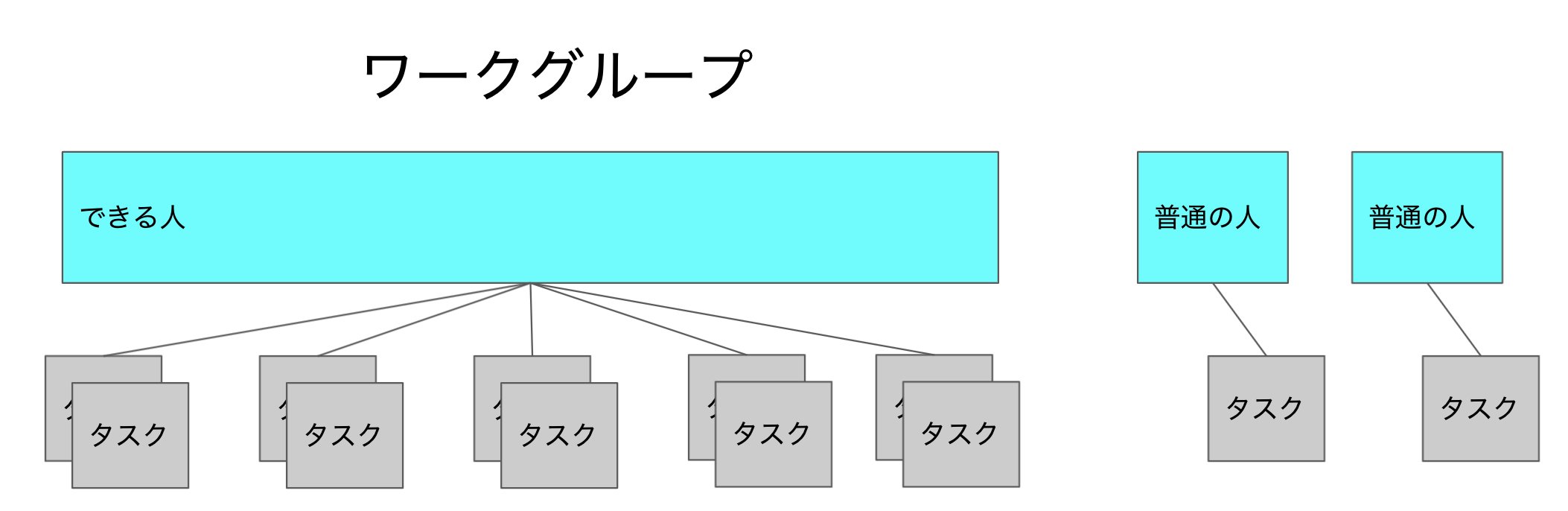 「チーム」が何かは例えばこんな感じですね。今見ると個人にタスクをアサインしているのはダメだなと思うんですが、 少なくとも「ワークグループ」と「チーム」の違いとしては十分かなと。